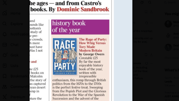 Dominic Sandbrook of The Rest Is History called The Rage of Party “by far the most enjoyable history book of the year”. Our clients Keith Cameron and Kevin Rowland were also chosen on the Times Books of the Year list.